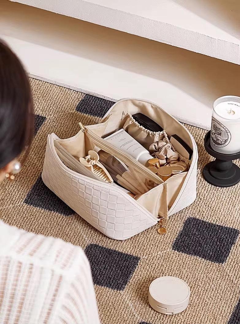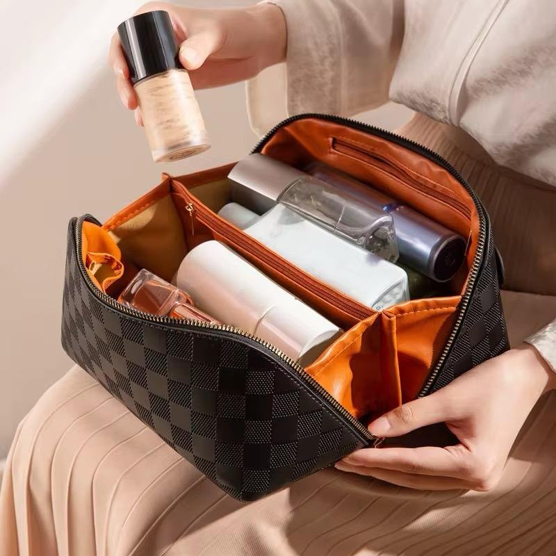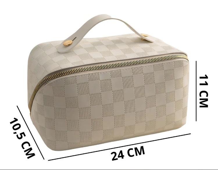 Un neceser amplio, práctico y con mucho estilo. Su diseño con cierre lateral lo hace súper cómodo para abrir y ver todo de un vistazo. Ideal para llevar tus esenciales de viaje, maquillaje o cuidado personal. Fabricado con materiales resistentes y fácil de limpiar, es ese accesorio infaltable que combina funcionalidad y diseño moderno.