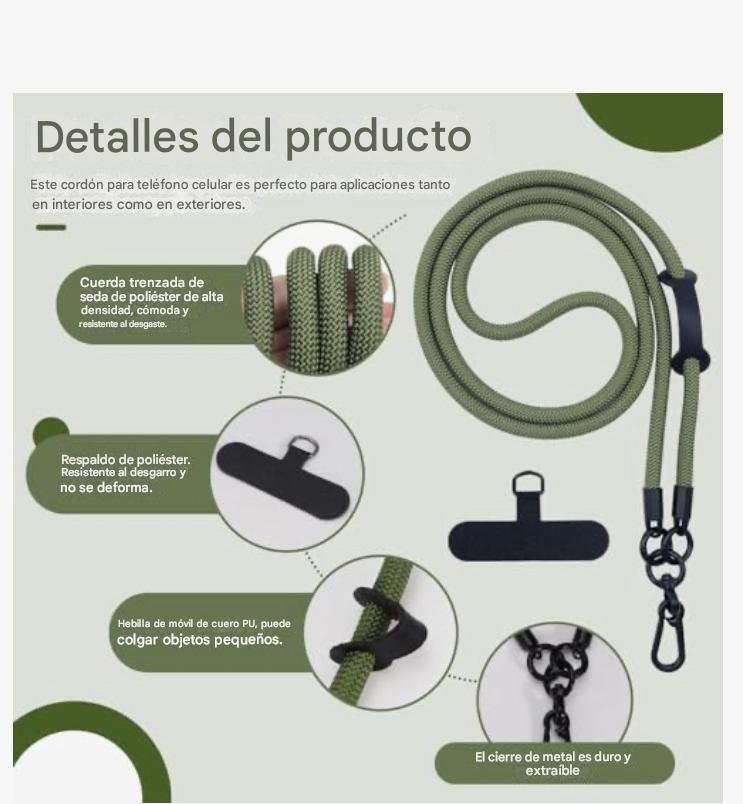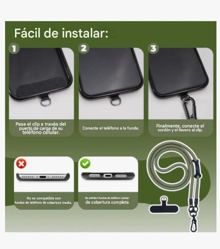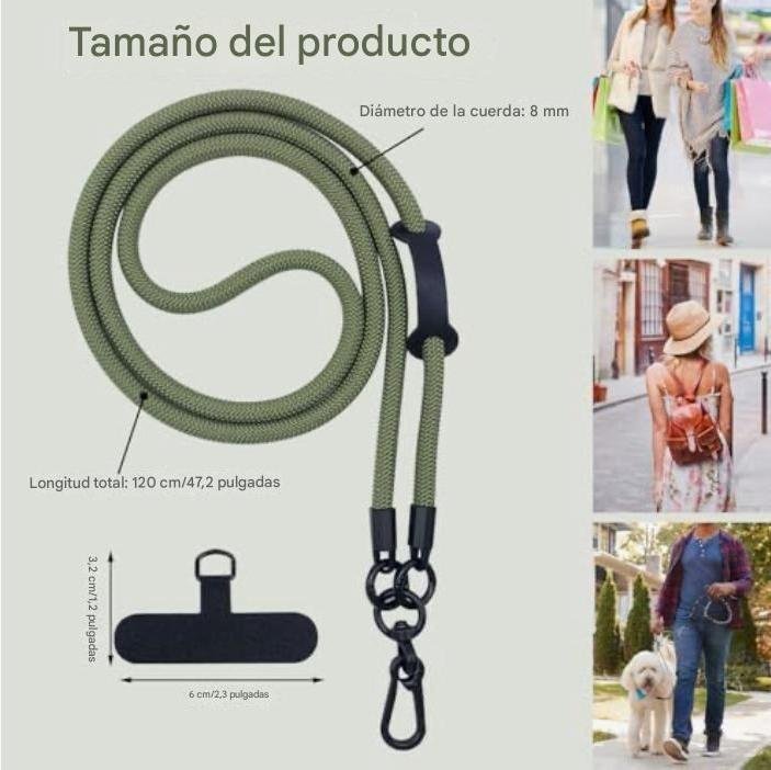 Nuestra correa para celular es el accesorio que no sabías que necesitabas: práctica, cómoda y con diseño. Ideal para no perder el teléfono y tener las manos libres en todo momento.