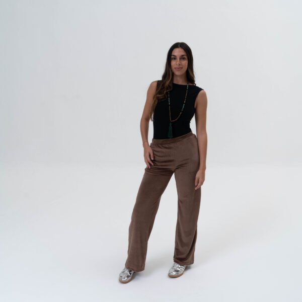 Cuando la textura abraza el diseño, nacen prendas como esta. Un pantalón de morley en tono camel que combina lo mejor del confort con ese toque chic que te resuelve el look. Su caída fluida, elástico en la cintura y el color neutro lo hacen tan versátil como irresistible. De la casa a la calle, y de ahí a donde quieras.